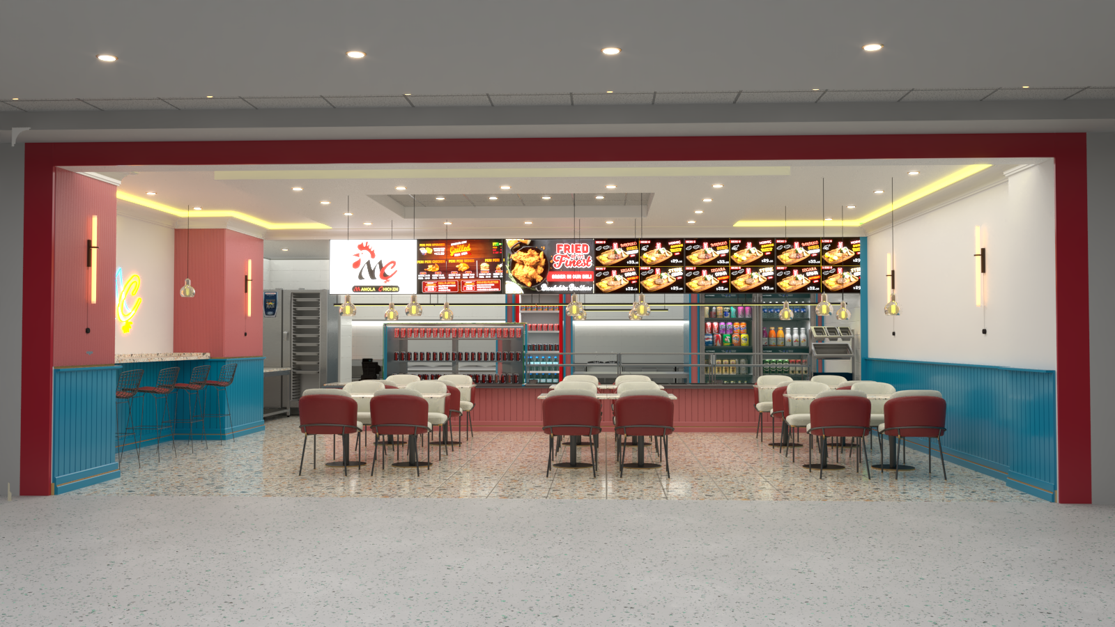 Manola Chicken, Cezayir'in Setif şehrinde, Kuzey Afrika'nın en büyük alışveriş merkezlerinden biri olan Setif ParkMall'de konumlanmış bir fast-food restoranıdır. Geleneksel Cezayir restoranı tarzından farklı olarak, daha iç açıcı ve davetkar bir kafe-restoran konsepti benimsedik. İnşaat işleri ve mobilya imalatı işleri, Cezayir'deki yerel kaynaklarla çözümlenerek başarıyla tamamlanmış ve kullanıma açılmıştır.